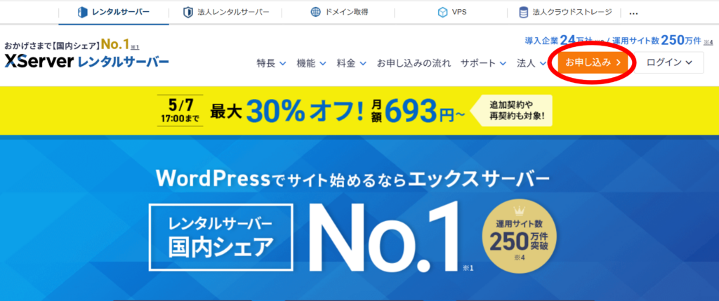 手順⑤ XServerアカウントを取得