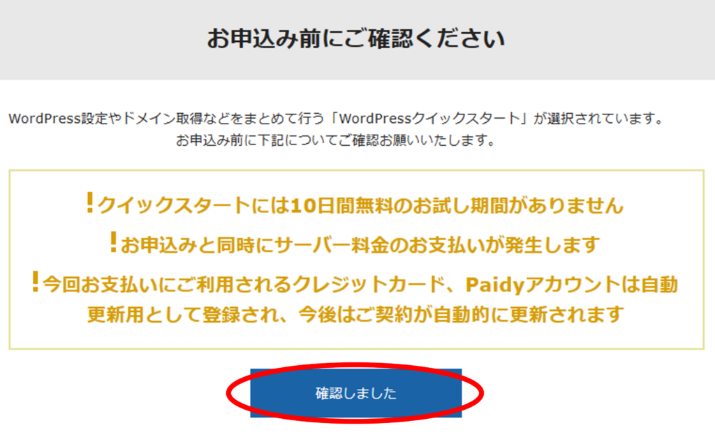 チェックを付けた時点でこのウィンドウが表示されるので「確認しました」を押します。