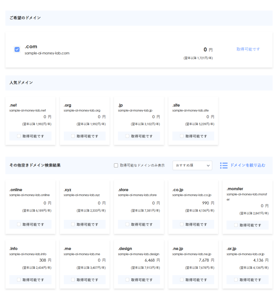 僕個人としては『.jp』もおすすめです。