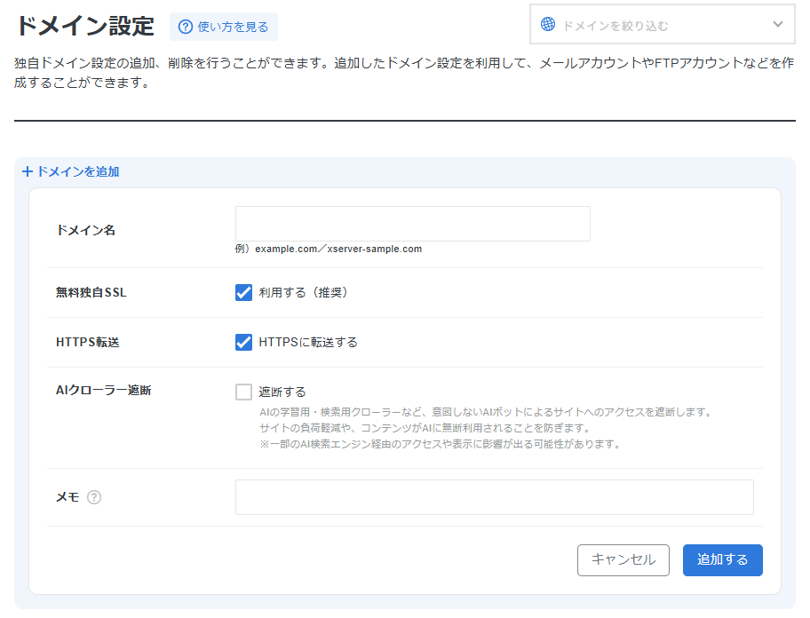 ドメイン設定